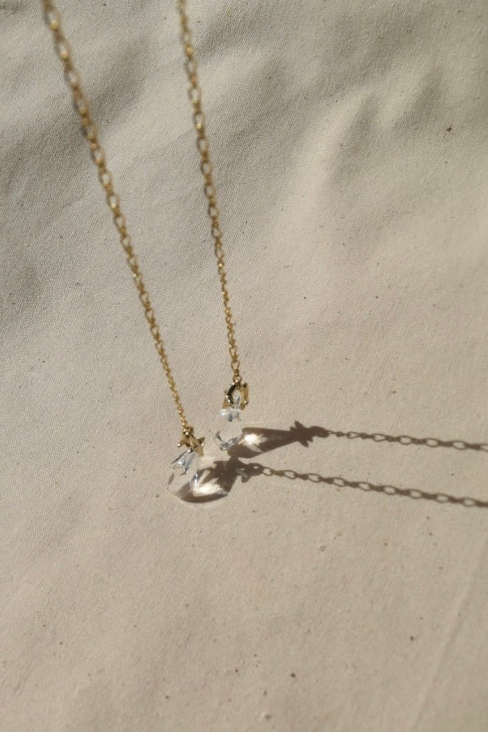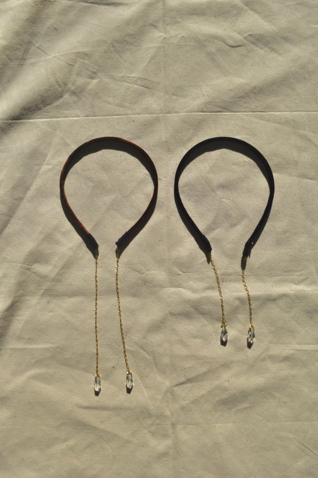 Hardware: Brass, copper (chain)